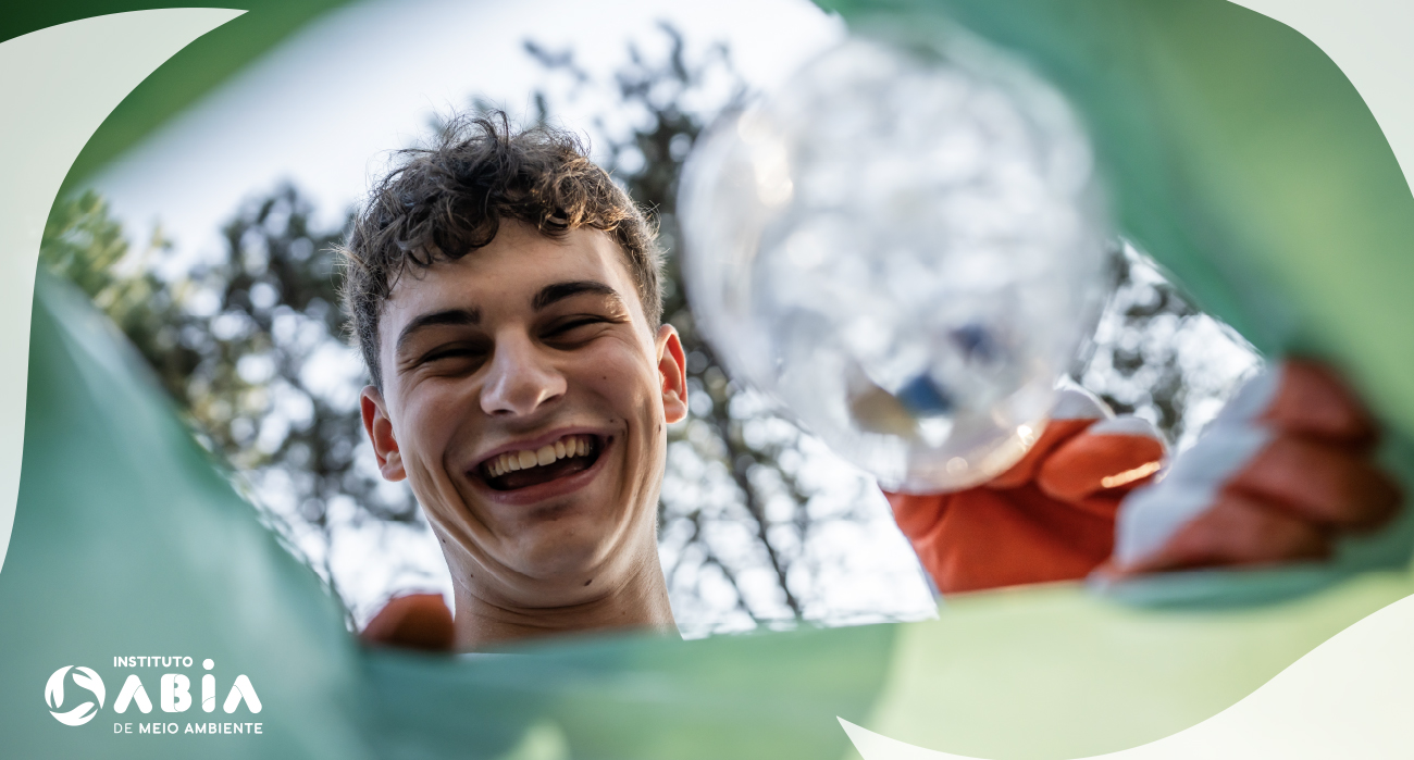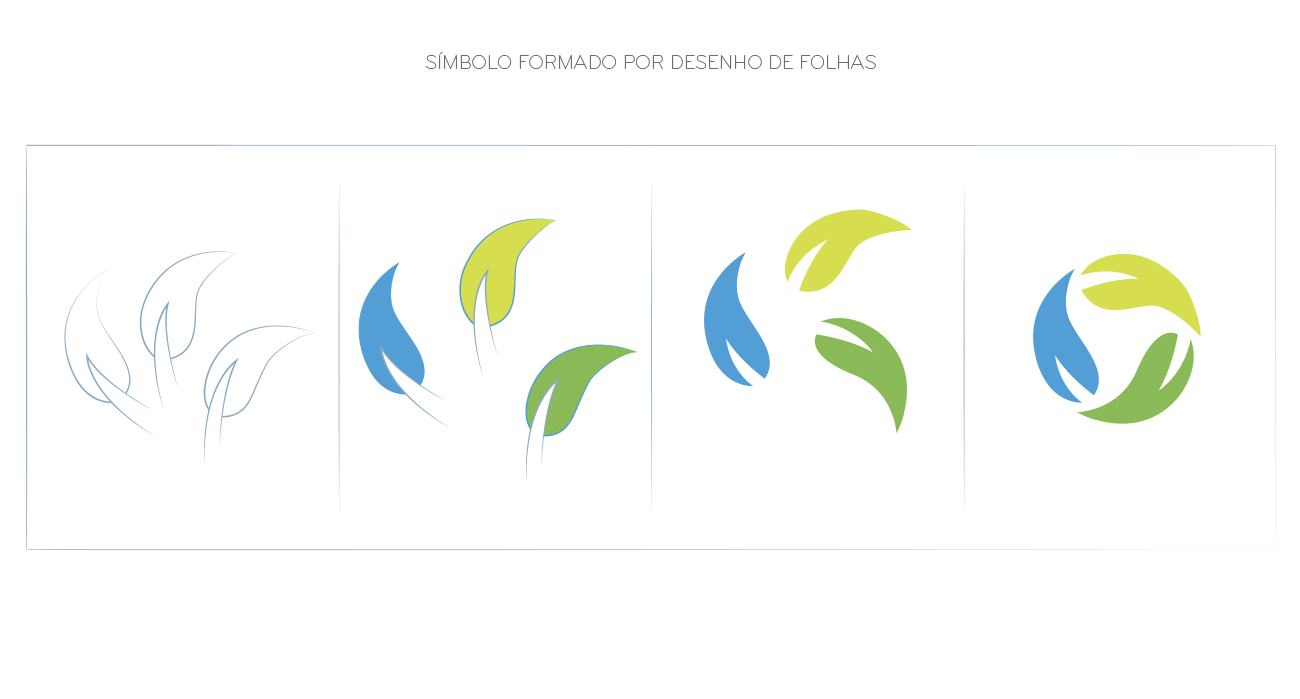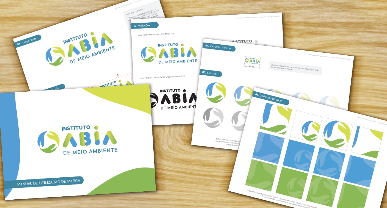 Optamos por manter a tipografia já utilizada na marca ABIA, reforçando a ligação institucional entre a ABIA e o Instituto. Para o símbolo, exploramos elementos da natureza com folhas em movimento em uma composição circular, evocando os conceitos de reciclagem e economia circular. A paleta preserva os tons de verde e azul do universo da marca-mãe, garantindo continuidade e leitura imediata do território sustentável.