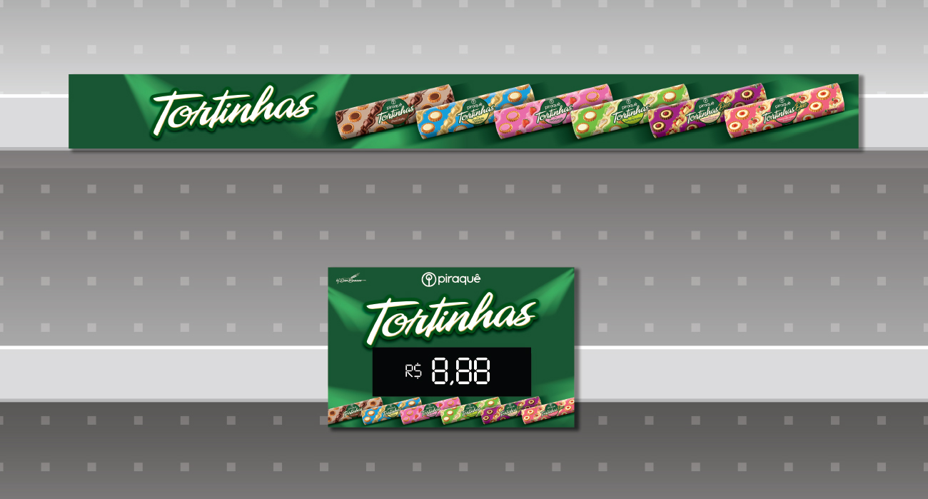 Para movimentar a gôndola e direcionar o olhar do consumidor para o produto, desenvolvemos cantoneiras e precificadores personalizados e incluímos wobblers como parte da estratégia de merchandising. Eles se destacam da prateleira e chamam a atenção através de movimento e cor, são ideais para destacar as Tortinhas Piraquê e atrair o interesse dos consumidores.