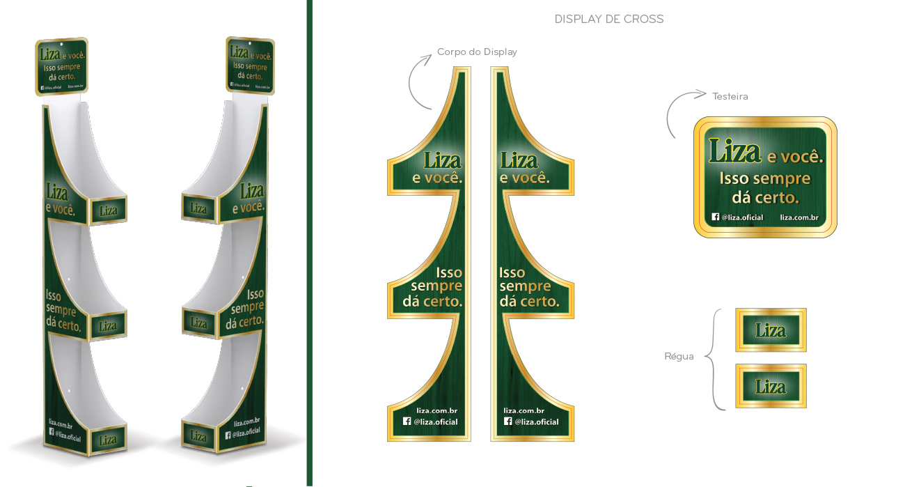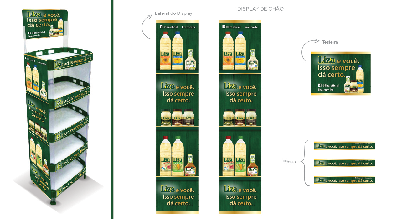Criamos um display de chão para destacar os produtos Liza em locais estratégicos das lojas, atraindo a atenção dos consumidores e incentivando a compra por impulso.